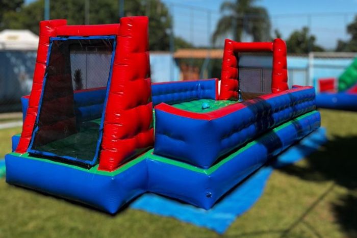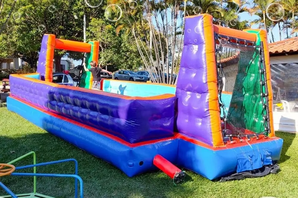 Reúna os amigos e divirta-se escorregando e jogando futebol em um campo cheio de espuma refrescante!